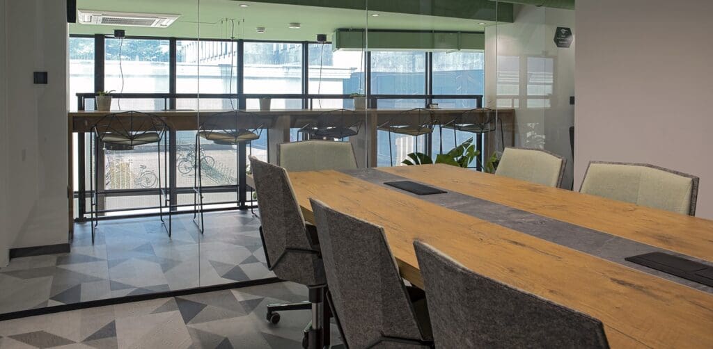 Prostor lahko uporabiš za poslovne klice, razgovore in druge sestanke. Pri hibridnem delu ti bodo v pomoč 55-inčna televizija znamke Samsung s priključki HDMI in USB-C ter daljinec za premikanje po predstavitvi znamke Logitech. Sprosti se na stolih znamke Donar, narejenih iz recikliranih plastenk, ter se posveti svojemu sestanku!